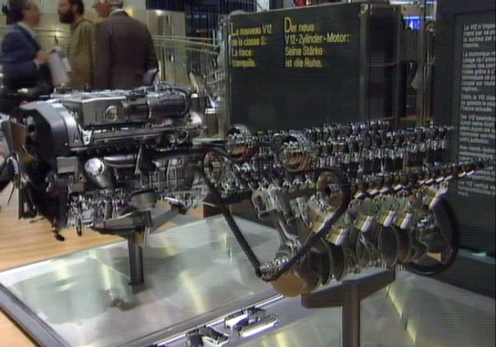 Der V12-Motor 'M120', zunächst aus zwei gekoppelten 6-Zylindern bestehend, läuft zum ersten Mal auf dem Prüfstand. |